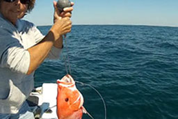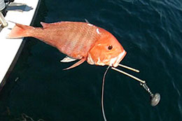 The red snapper above has it's stomach protruding from it's mouth and the body is bloated. Be very careful not to pierce the stomach when using any return device.
